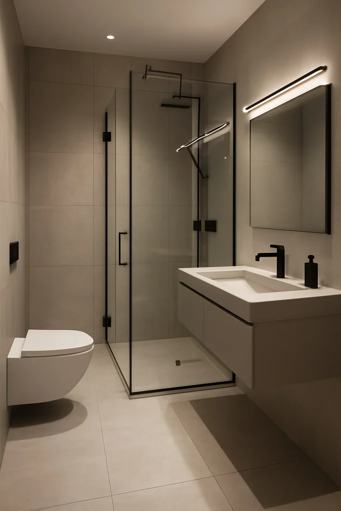 - Premium fixtures, including designer tapware, shower screens, and vanity units.